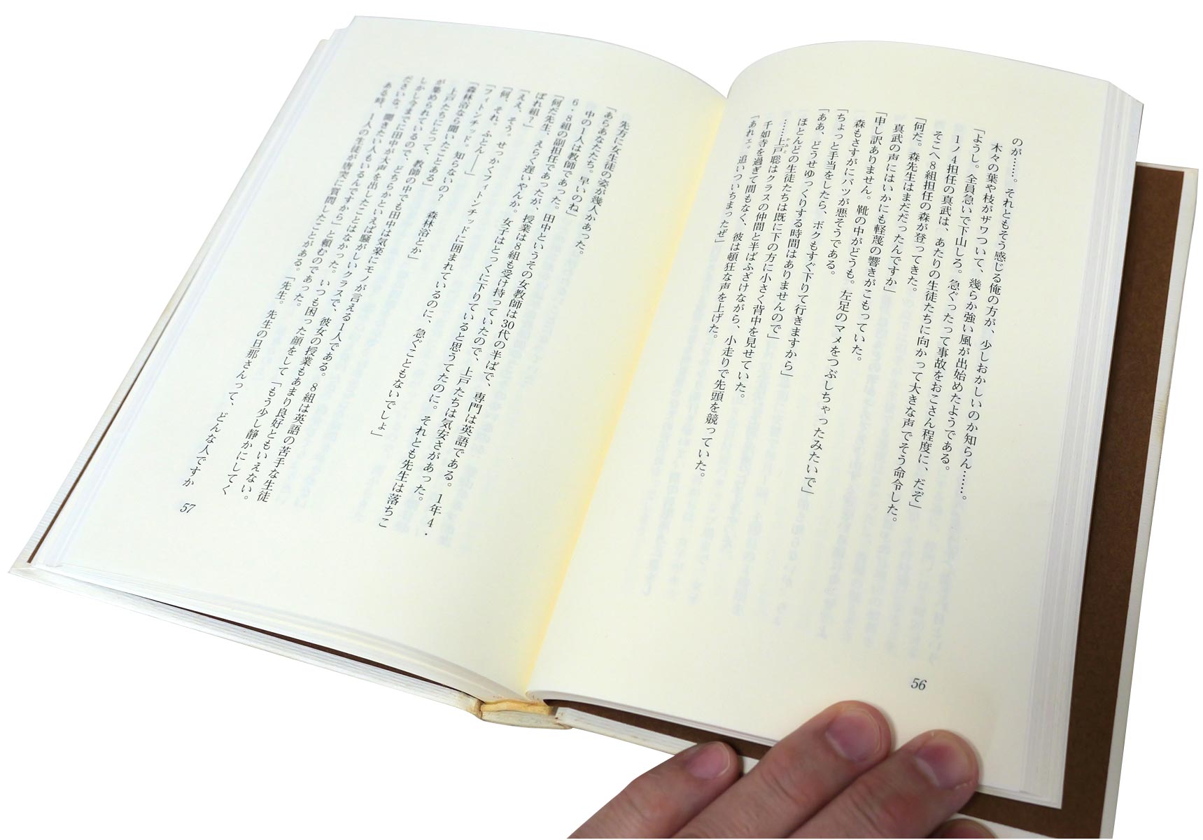 当時は縦書き日本語組版にまともに対応したアプリケーションがなく、普及していたQuarkXPressでは縦書きの句読点ぶら下げやルビなどの扱いなど、一般的な日本語組版に難があることから、本書の本文は写植によって組むことになりました。装幀はいのうえ・しんぢ様によるもので、それをデジタル化するべく書名ロゴや画像素材についてのデータ化を担当しました。